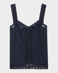 - Zadig & Voltaire "Celite" lingerie-inspired camisole crafted from tomboy cotton with intricate lace trim - Subtle V neckline - Sleeveless - Relaxed fit - Hip length - Button front closure - Cotton/viscose - Dry clean - Imported