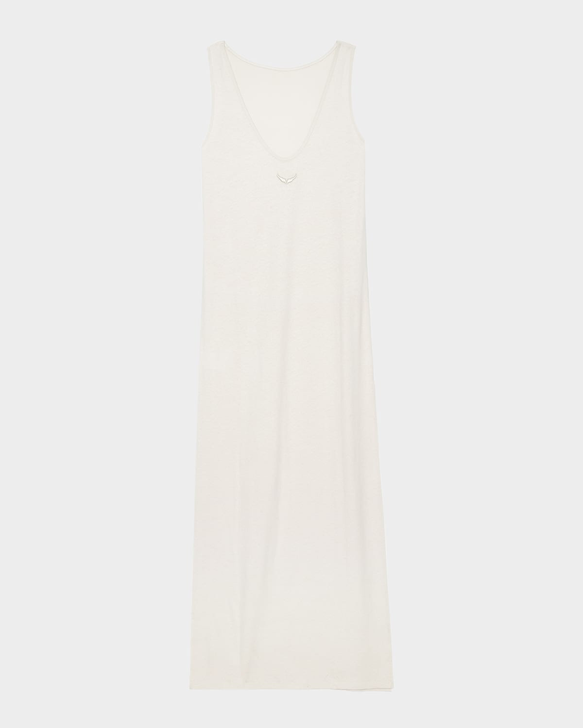 - Zadig & Voltaire "Deva" sleek reversible dress embroidered with the brand's signature logo - Scoop neckline - Sleeveless - Full length - Straight silhouette - Slipover style - Cotton/linen - Machine wash cold - Made in Portugal