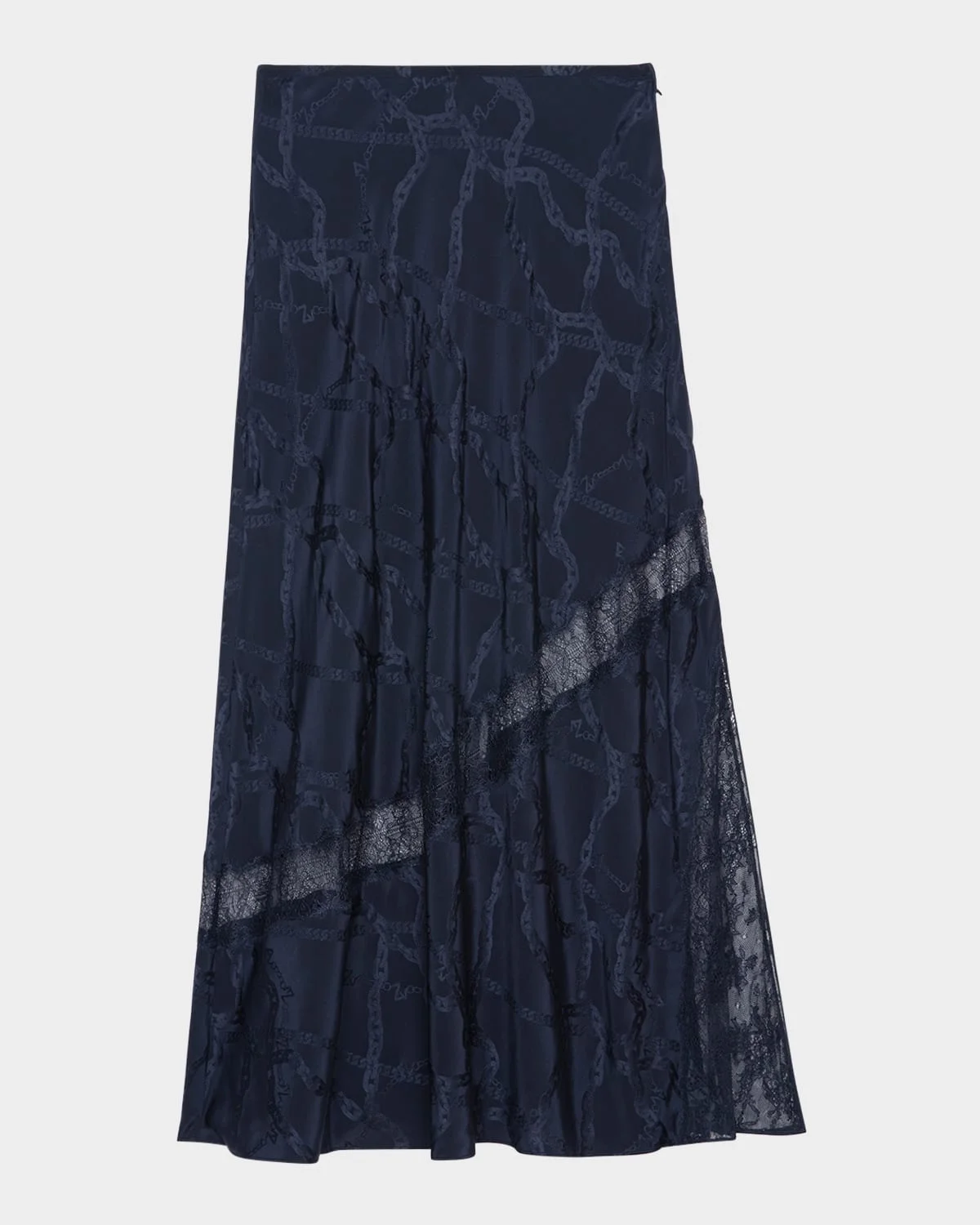 - Zadig & Voltaire "Jaylal" skirt in a chain jacquard construction with lace paneling - High rise - Hem falls below the knee - Skirt falls straight from hip to hem - Invisible zip closure - Silk - Dry clean - Imported