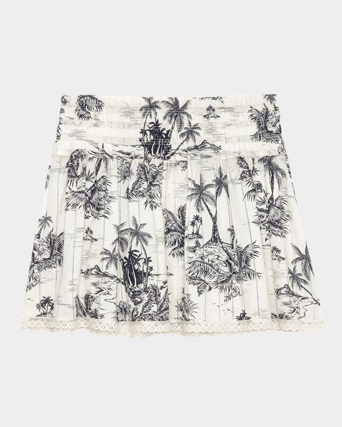 - Zadig & Voltaire "Jocky" skirt in Tropical Island print with stretch ladder insets and a feminine lace trim - High-rise waistband - Hem falls above the knee - A-line silhouette - Slip-on style - Cotton - Machine wash cold - Imported