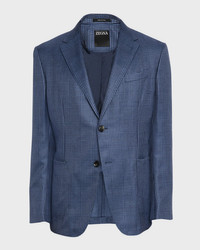- ZEGNA sport coat in sumptuous cashmere and silk with a stylish Prince of Wales pattern - Notched lapels - Single-breasted front - Barchetta chest pocket - Hip patch pockets - Internal breast pocket - Double-vented back - Cashmere/silk - Unlined - Dry clean - Made in Italy