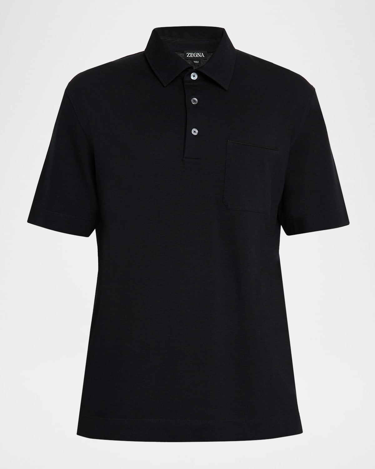 - ZEGNA solid polo shirt in breathable cotton characterized by a tonal leather-trimmed chest pocket - Spread collar - Three-button placket - Short sleeves - Vented sides - Classic fit - Pullover style - Cotton - Unlined - Dry clean, machine wash line dry - Imported