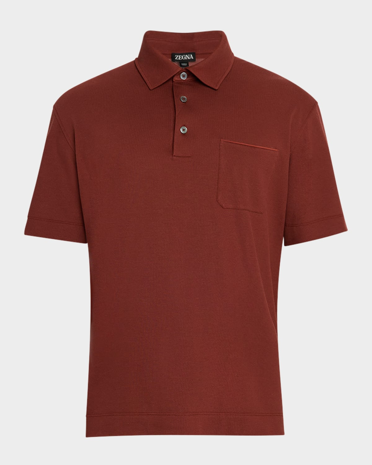 - ZEGNA polo shirt in cotton pique featuring a leather-trimmed chest patch pocket - Spread collar - Three-button placket - Short sleeves - Vented sides - Pullover style - Cotton/leather - Dry clean - Made in Italy