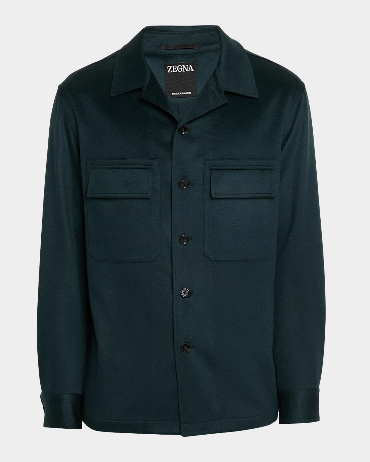 The Oasi Cashmere overshirt by ZEGNA is emphasized by the luxurious texture of fine cashmere. Notch collar Button front Chest flap pockets Long sleeves Elbow patches Single-button cuffs Vented sides Straight hem Classic fit Cashmere Lining: Polyester Dry clean Trim: Leather Made in Italy