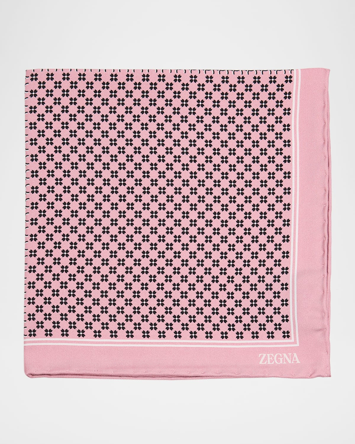 - ZEGNA pocket square in silk, showcasing a small geometric floral print - Double-stripe border - Logo on the corner - May be styled multiple ways - Silk - Do not iron, dry clean - Made in Italy