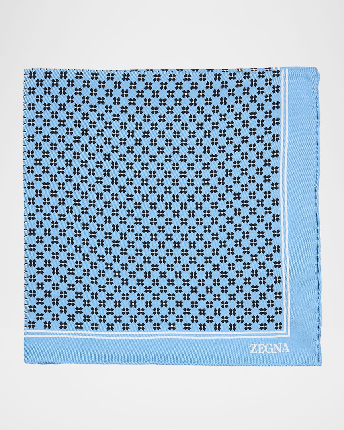 - ZEGNA pocket square in silk, showcasing a small geometric floral print - Double-stripe border - Logo on the corner - May be styled multiple ways - Silk - Do not iron, dry clean - Made in Italy