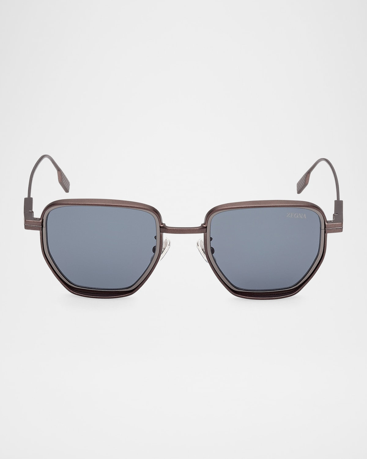 - ZEGNA sunglasses in metal and acetate - Eye/bridge/temple (in mm): 49-22-145 - Eyewear style: Round - Solid-color lenses - Adjustable nose pads - Spot clean - 100% UVA/UVB protection - Made in Italy - Proposition 65 warning for California residents