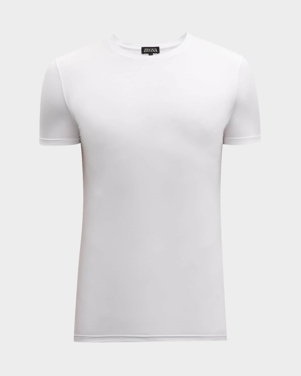 - ZEGNA T-shirt in solid micro-modal stretch fabric - Crew neckline - Short sleeves - Pullover style - Logo tab - Slim fit - Modal/elastane - Made in Italy - Model is 6'1"/185cm.