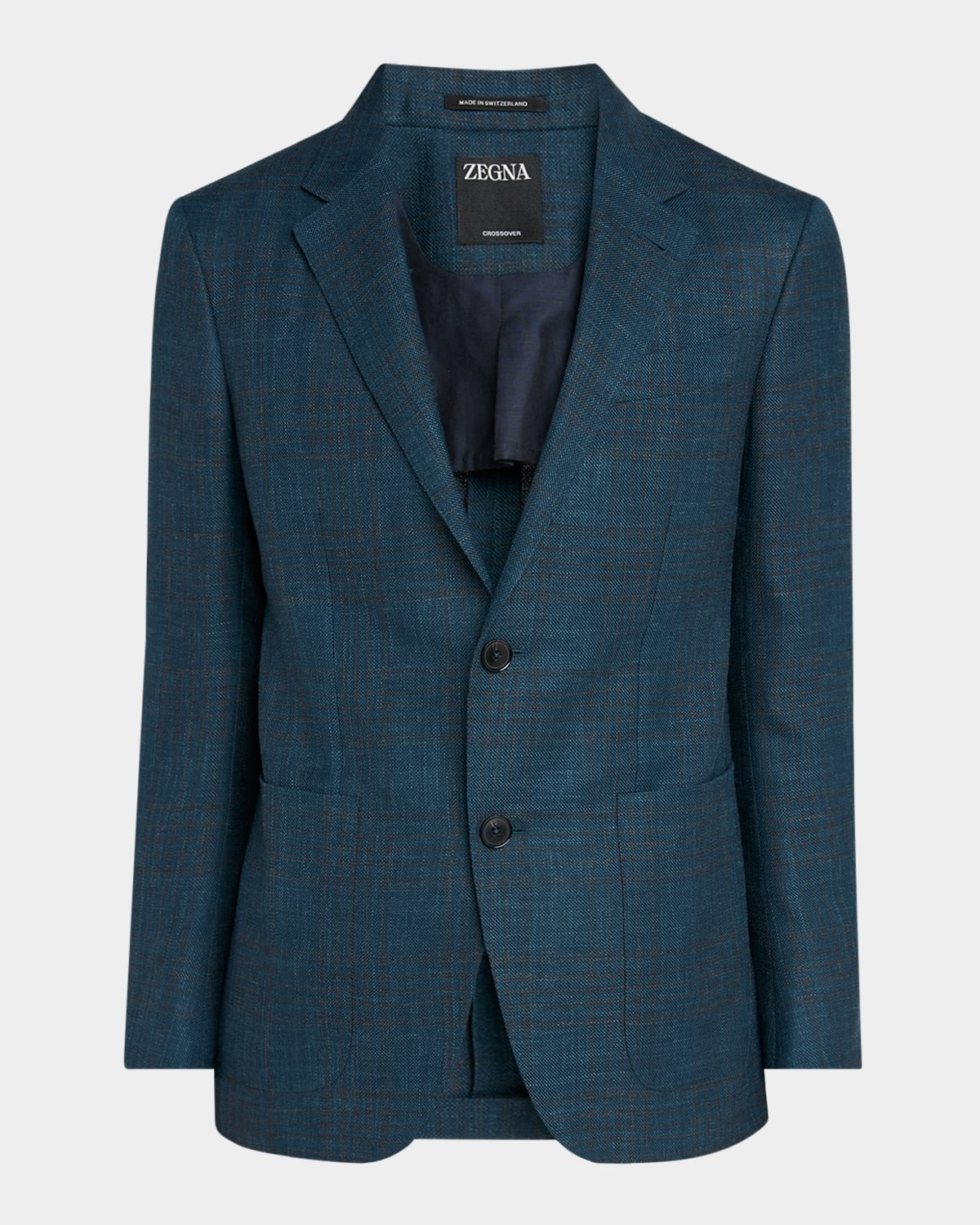 - ZEGNA sport coat in tonal plaid - Notched lapels - Two-button closure - Chest welt pocket - Hip patch pockets - Interior welt pocket - Four-button sleeve finish - Double-vented back - Wool/silk/linen - Dry clean - Made in Italy