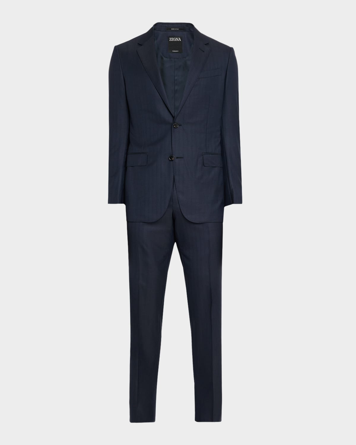 - ZEGNA wool two-piece suit, displaying a discreet vertical double-stripe print - Wool - Unlined - Dry clean - Made in Italy - Jacket: - Notch lapels - Single-breasted front - Chest welt pocket - Hip flap pockets - Internal breast pocket - Double-vented back - Pants: - Regular rise - Flat front - Side slip pockets - Full length