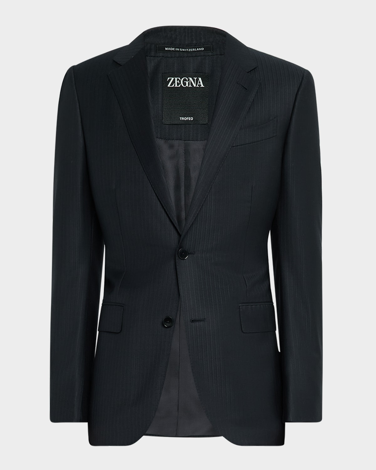 - ZEGNA suit in tonal stripes - Wool - Dry clean - Made in Italy - Jacket: - Notch lapels; buttonhole at left lapel - Two-button closure - Chest welt pocket - Hip flap pockets - Unfinished sleeves - Double-vented back - Trousers: - Regular rise - Darted front - Extended button closure - Side slant pockets - Back welt pockets - Full length - Unfinished hem to be tailored to desired length
