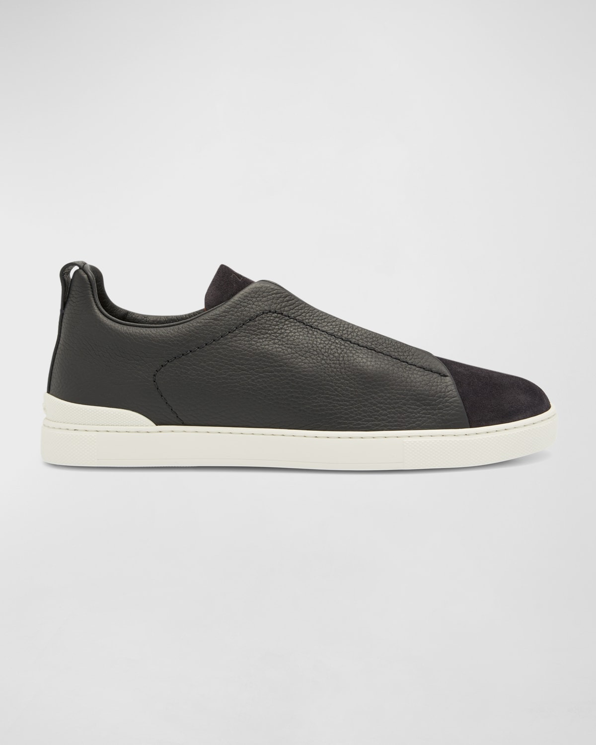 - ZEGNA "Triple-Stitch" sneaker in grained calf leather and suede - Lightweight and flexible, this refined design is a luxurious take on casual footwear for fast-paced lifestyles - Flat heel - Round toe - Crisscross elastic bands at vamp - Logo at tongue - Pull-tab at backstay - Slip-on style - Rubber sole
