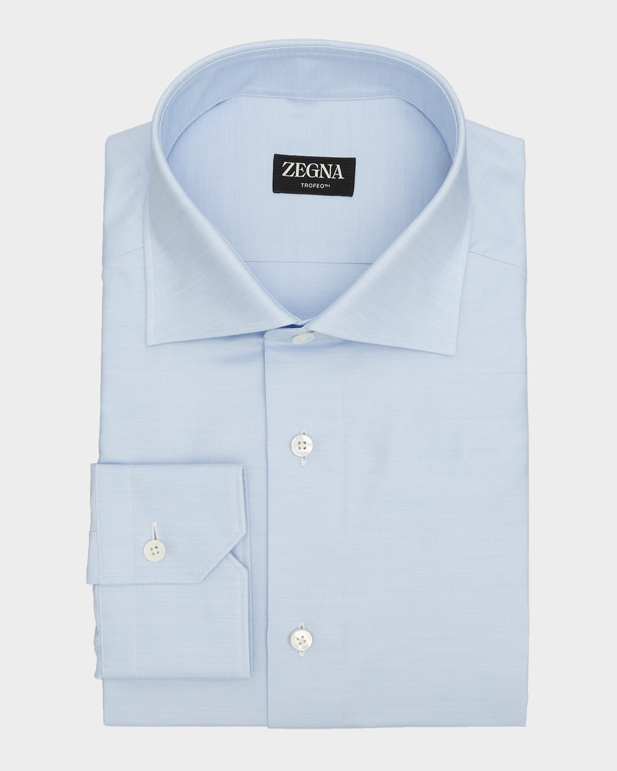 - ZEGNA dress shirt crafted from fine, long cotton fibers for a silky smooth finish and added wrinkle-resistance - Approx. 14"L x 10"W - Spread collar; button placket - Long sleeves - Mitered barrel cuffs - Yoked back shoulders - Shirttail hem - Classic fit - Item Weight (Lbs.): 0.6 - Cotton - Imported - Model is 6'1"/185cm.
