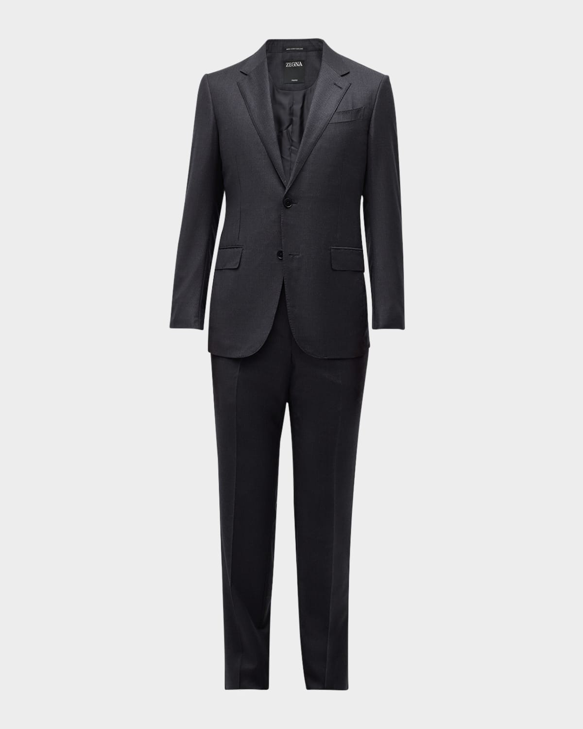- ZEGNA sartorial suit in tonal micro stripes - Cut from Trofeo™, a fabric crafted from super-fine merino wool that's naturally breathable and soft - Dry clean - Made in Italy - Jacket: - Notched lapels; buttonhole at left lapel - Two-button front - Chest welt pocket - Hip flap pockets - Unfinished sleeves - Double-vented back - Trousers: - Regular rise - Darted front - Zip fly with button-tab closure - Front slant pockets - Back welt pockets - Full length - Unfinished hem to be tailored to desired length - Model is 6'1"/185cm.
