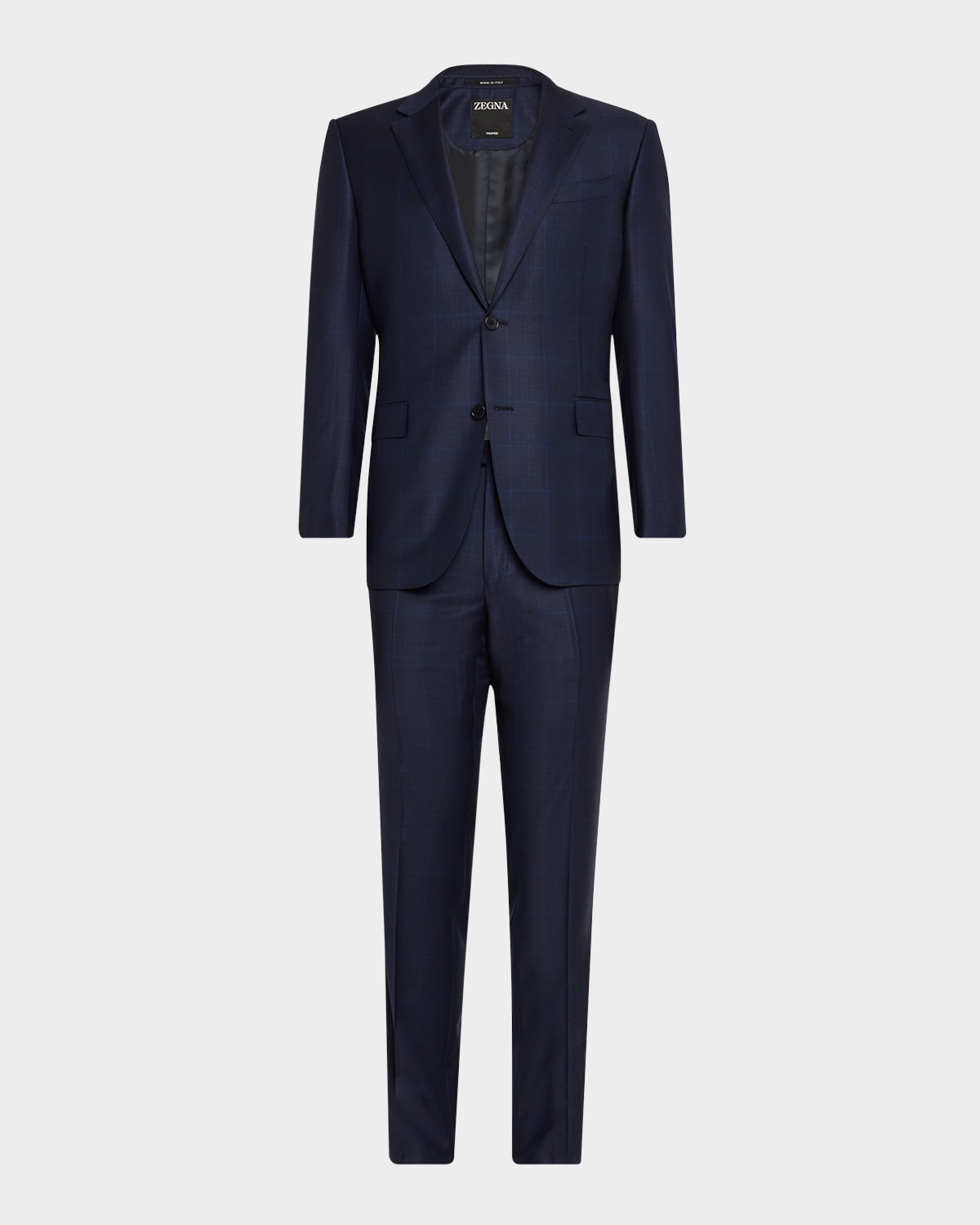 - ZEGNA Trofeo™ suit in tonal plaid - Wool - Dry clean - Made in Italy - Jacket: - Notch lapels; buttonhole at left lapel - Two-button closure - Chest welt pocket - Hip flap pockets - Interior welt pocket - Unfinished sleeves - Double-vented back - Trousers: - Regular rise - Darted front - Extended button-zip closure - Side slip pockets - Back welt pockets - Full length - Unfinished hem to be tailored to desired length