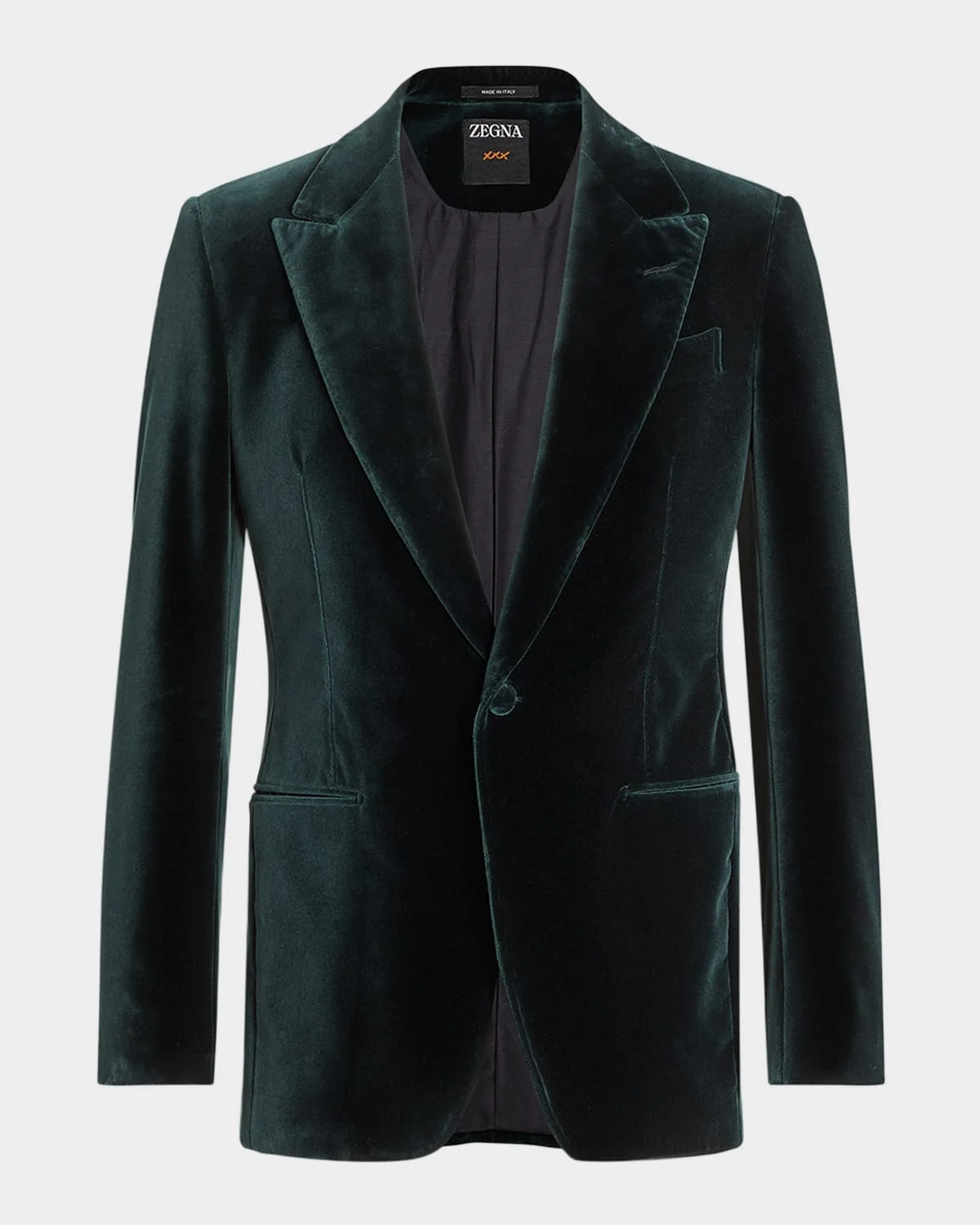 Rich velvet creates a sleek and effortless elegance on this men's dinner jacket by ZEGNA Peak lapels Singlebutton front Barchetta chest pocket Hip besom pockets Cotton Fully lined Dry clean Made in Italy