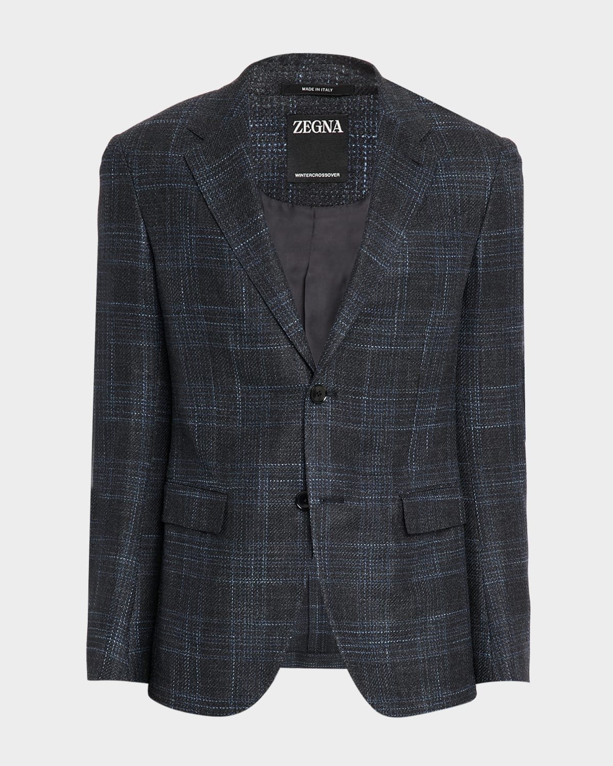 Men's Winter Crossover Check Single-Breasted Sport Coat