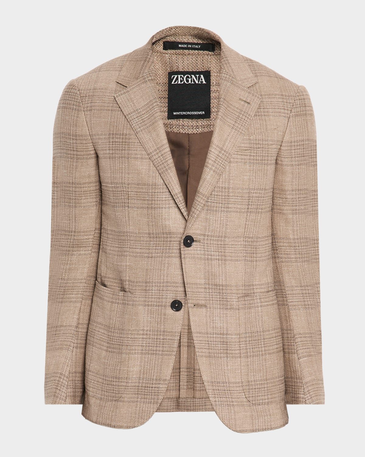 - ZEGNA tonal plaid sport jacket characterized by a luxurious blend of natural materials to transition easily across seasons - Notched lapels - Single-breasted front - Barchetta chest pocket - Hip patch pockets - Internal breast pocket - Double-vented back - Wool/silk/linen - Unlined - Dry clean - Made in Switzerland