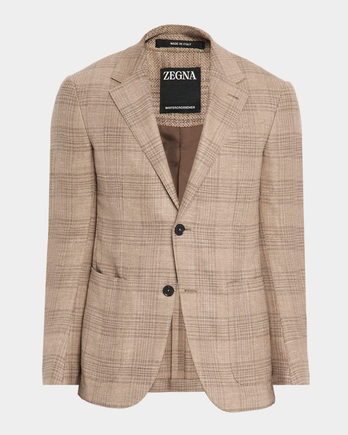 ZEGNA tonal plaid sport jacket characterized by a luxurious blend of natural materials to transition easily across seasons Notched lapels Single-breasted front Barchetta chest pocket Hip patch pockets Internal breast pocket Double-vented back Wool/silk/linen Unlined Dry clean Made in Switzerland