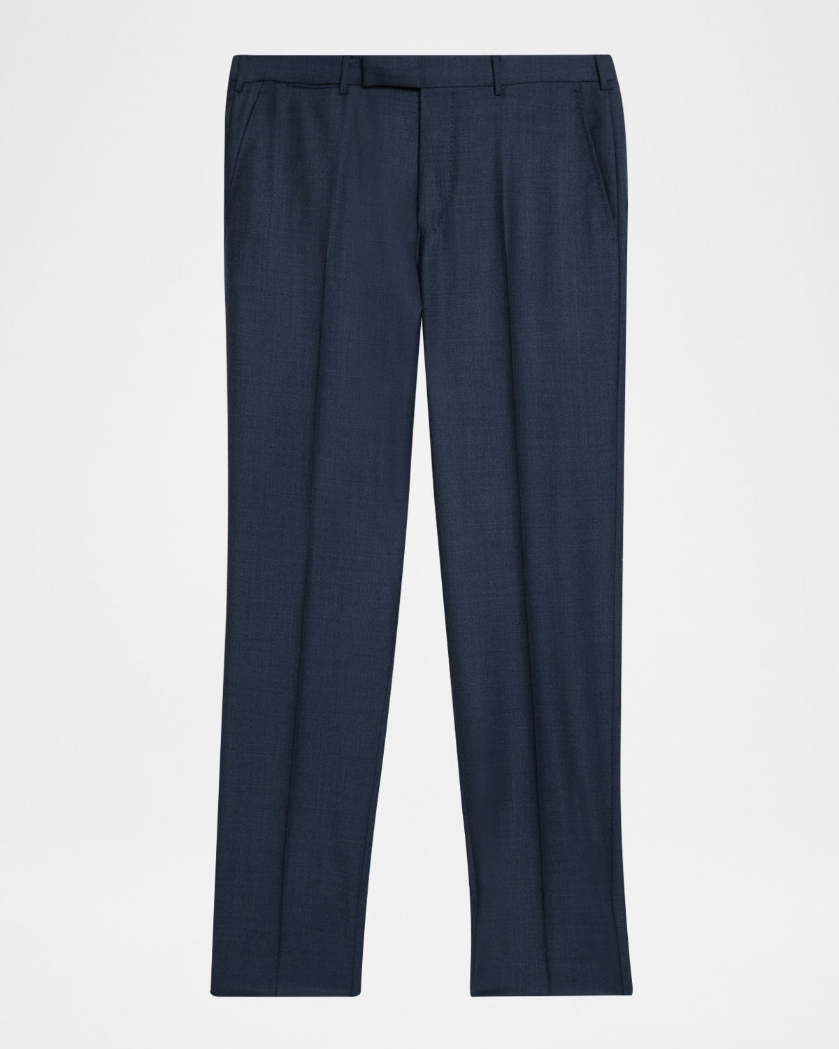 - ZEGNA trousers in dimensional wool sharkskin - Regular rise - Flat front - Side slip pockets - Ticket pocket - Buttoned back pockets - Modern fit through straight legs - Full length - Extended button-zip front; belt loops - Wool - Unlined - Dry clean - Imported