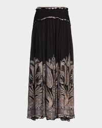 Crafted from a luxurious silk blend, the "Dream" maxi skirt by Zimmermann boasts a smocked yoke and an intricate paisley print with frill detailing. High rise Aline silhouette Full length Center back zip Viscose/silk Unlined Dry clean Imported