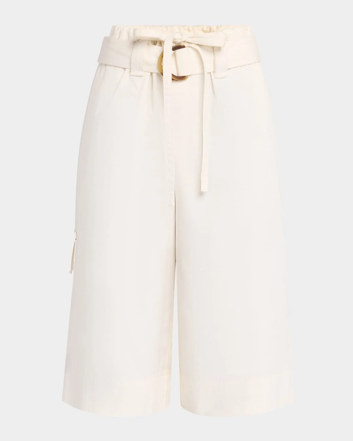 - Zimmermann "Illuminate" long bermuda shorts featuring a drawstring waist with removable belt - High rise - Four-pocket style; cargo pockets - Relaxed, wide legs - Hem falls below the knee - Pull-on style - Cotton - Dry clean - Imported - Size conversion: - 0 = X-Small, 1 = Small, 2 = Medium, 3 = Large