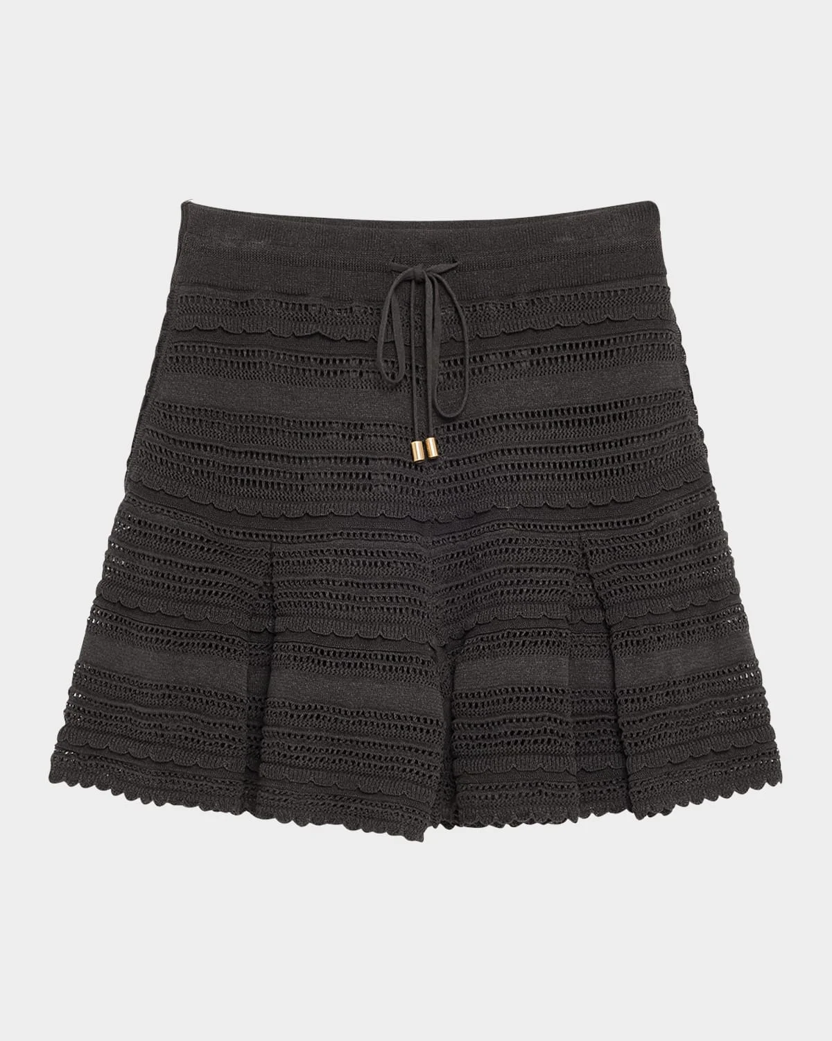 - Zimmermann"Lucky" shorts in a scalloped lace knit construction with pleated detailing - High-rise drawstring waistband - Relaxed legs - Pull-on style - Paper/polyester - Lining: Cotton - Hand wash - Imported - Size conversion: - 0 = X-Small, 1 = Small, 2 = Medium, 3 = Large