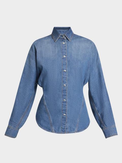 Seamed Button-Down Denim Top