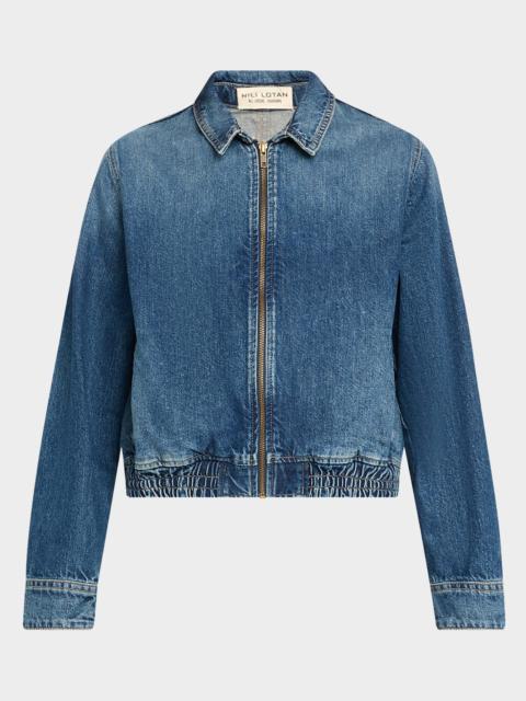 Men's Leather-Check Collar Silk and Cotton Trench Coat