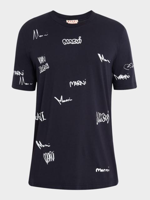 Men's Allover Multi-Logo Crewneck T-Shirt