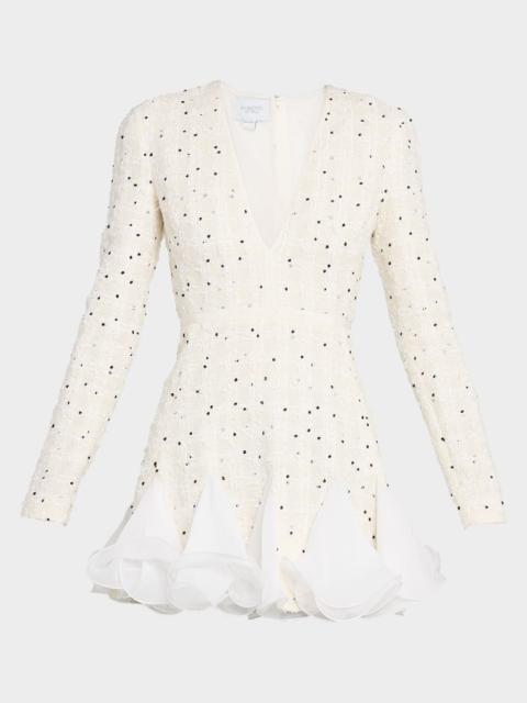 Polka-Dot Boucle Long-Sleeve Godet Mini Dress