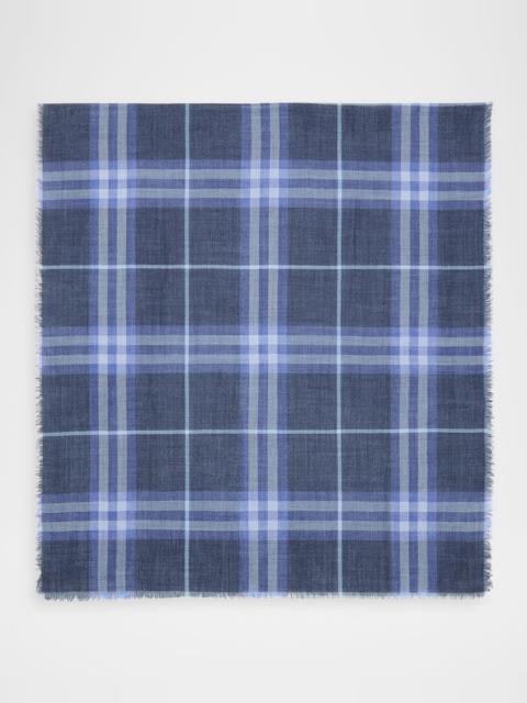 Wide Check Wool & Silk Scarf