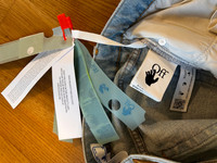 Deutsch 🇩🇪 ✨ Off-White Jeans „Bleach Baby Baggy“ – Flared – Low Rise – Größe W26 (XS) Neupreis: 650 € Ein markantes Denim-Piece mit angesagter Low-Rise-Silhouette und ausgestelltem Bein. • Modell: Bleach Baby Baggy • 100 % Baumwolle • Flared Fit Ein exklusives Designerstück, das hochwertigen Denim mit lässigem Streetstyle verbindet. ⸻ English 🇬🇧 ✨ Off-White “Bleach Baby Baggy” Jeans – Flared – Low Rise – Size W26 (XS) RRP: €650 A standout denim piece with a trendy low-rise silhouette and flared leg. • Model: Bleach Baby Baggy • 100% Cotton • Flared Fit An exclusive designer item that blends premium denim craftsmanship with effortless street style.