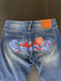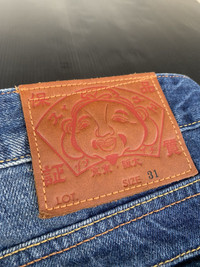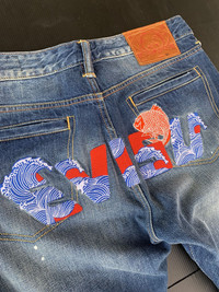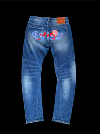 Evisu distressed Patched Painter Embroided Fish Logo Denim