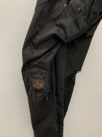 C1 Please do use measurements below to see if this will be a good fit first before purchasing This not real LV. Its 1 of 1 custom made by mysef using Authentic LV leather Bag. U would not see this at any Shop. I Custom the Distressed at this levis denim. Size on tag : 30x32 Material : 100% Cotton Condition : Good Condition *This is preloved and unique item. Limited to 1 piece/item & please dont expect the items is new or 100% perfect. Ship nationwide using Dhl Express Estimated 3-6 days after ship done Ship within 3 days after payment complete Thank you.