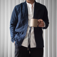 Cardigan - Vintage Indigo Dyed Kendo Samurai Kimono Noragi Jacket