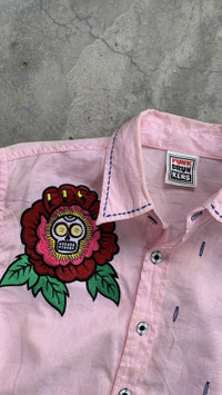 Japanese Brand - Punk Drunkers Embroided Skulls Button Shirt