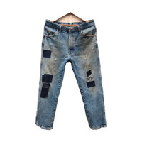 Vintage Baggy Patched Rustler Denim Jeans Pant Kurt kobain