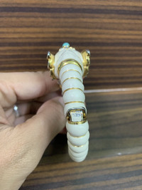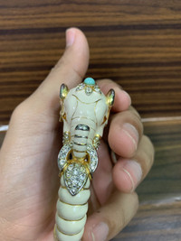 Vintage Kenneth J Lane Ivory Elephant Bangle White enamel