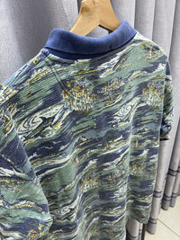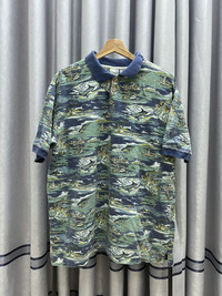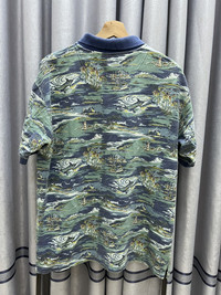 Vintage OP Ocean Pacific Surf Over Full Print Collar Tshirt