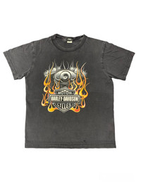 Vintage Thrashed Faded Flame Engine Harley Davidson Tshirt