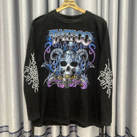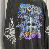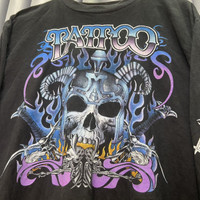 Vintage - Thrashed Faded Tattoo Skull Flame Long Sleeve Tshirt