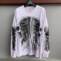 Vintage Y2K Overprint Ghost Skulls Printed Long Sleeve Tee