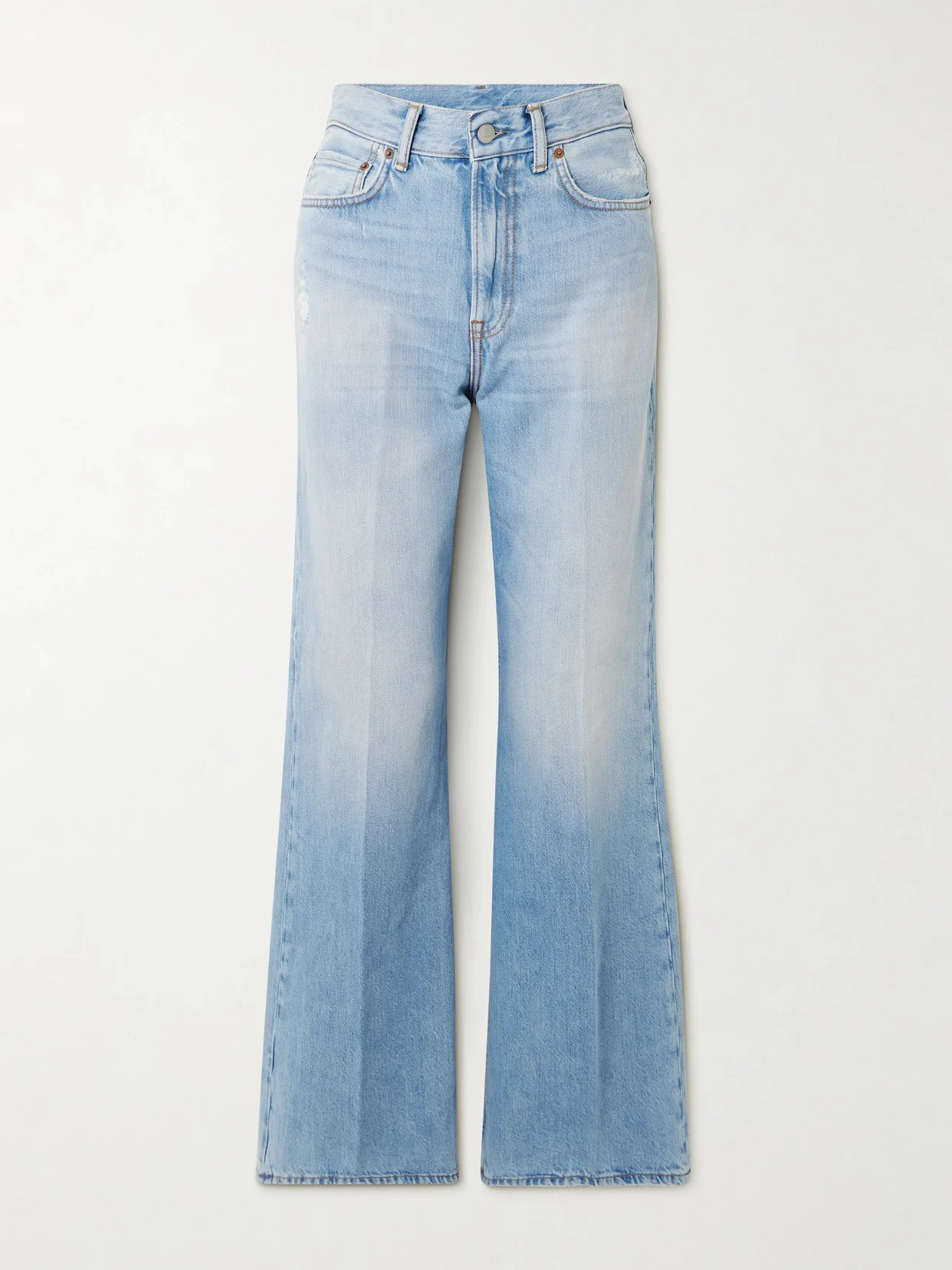 Jeans were the first piece of clothing designed by Acne Studios - founder Jonny Johansson created 100 pairs in 1997 and gifted them to friends and family. This style is made from light-blue denim and has a loose, wide-leg fit that pools at the floor. Lower-Impact Materials. This product is made using at least 50% lower-impact materials or ingredients. Find out more about our NET SUSTAIN criteria here.