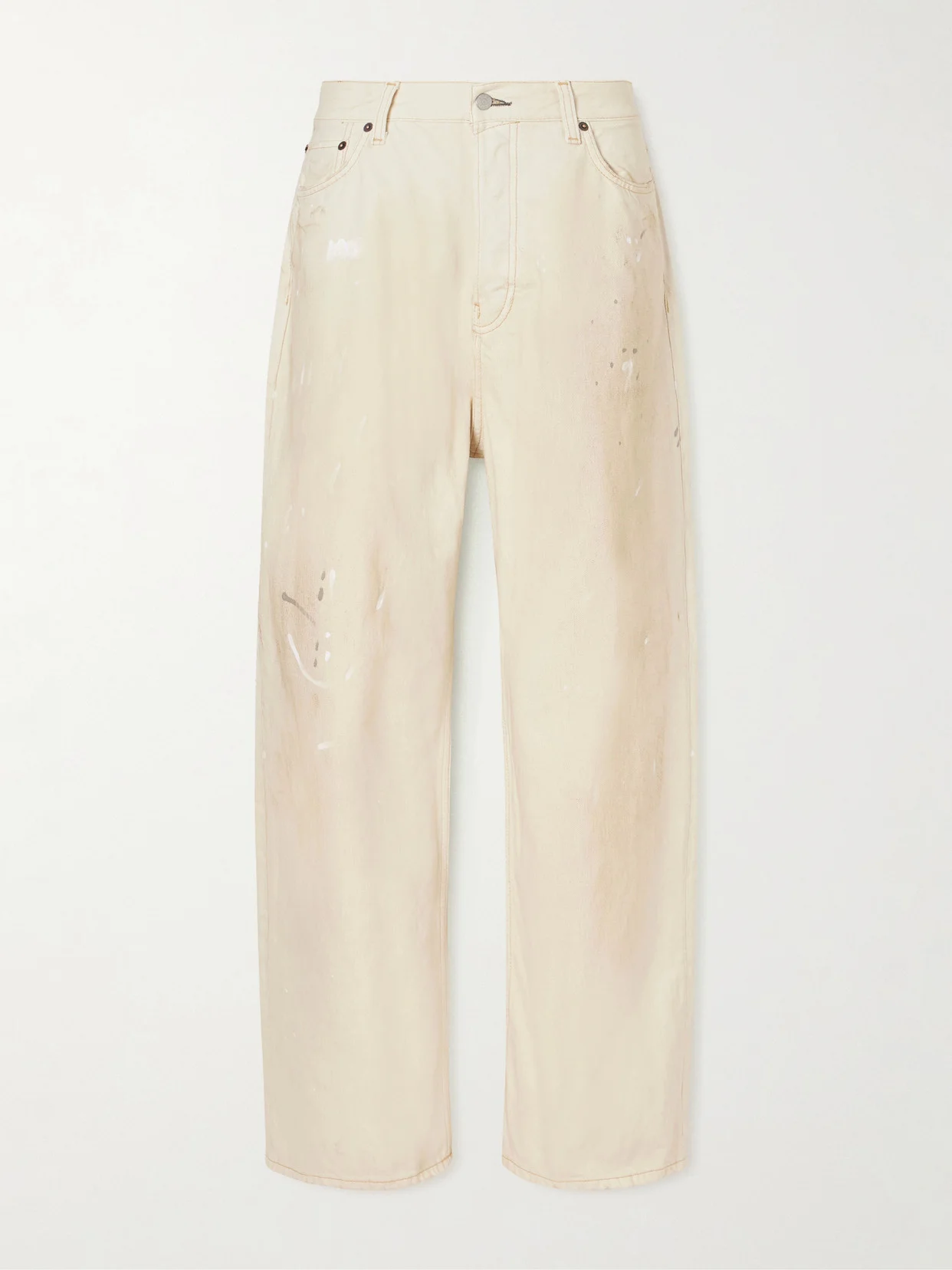 Paint marks on pants have become an Acne Studios signature. Made from denim, this pair is cut to a loose fit with a low-rise waist and finished with leather patch pockets at the back embellished with studs. Style them with pointed pumps for contrast.