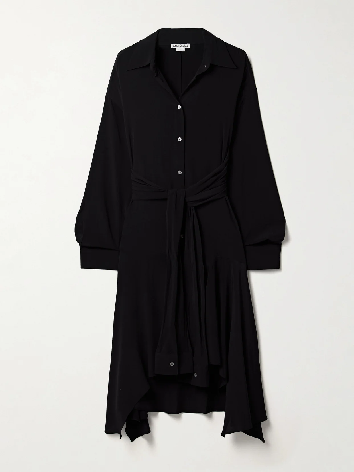 Convertible Asymmetric Belted Crepe De Chine Midi Shirt Dress