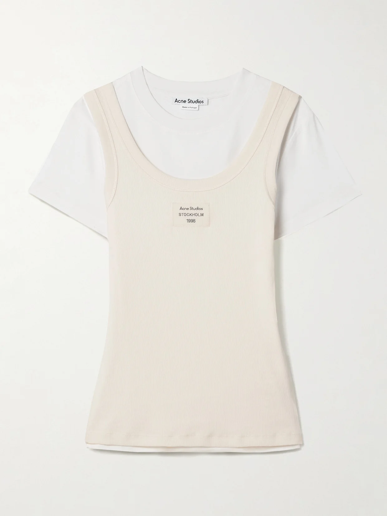 Acne Studios' top is intentionally designed to look like a tank layered over a coordinating T-shirt. It's made from ribbed cotton-blend jersey and appliqued with the logo on the chest. Lower-Impact Materials. This product is made using at least 50% lower-impact materials or ingredients. Find out more about our NET SUSTAIN criteria here.
