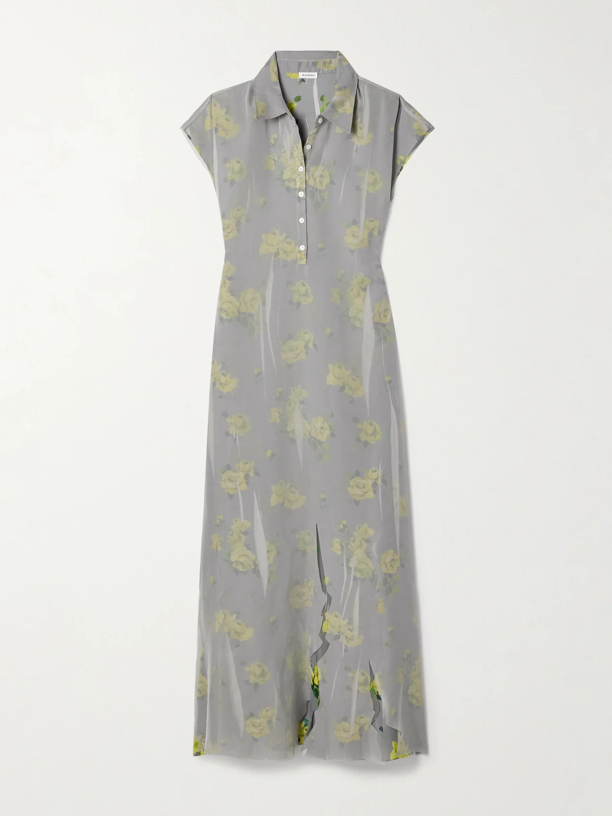 Acne Studios' dress has a sheer chiffon top layer that's ripped and torn along the maxi hem. Printed with colorful roses, the crepe underlay offers an opaque finish. Undo a few buttons to enhance the relaxed feel.