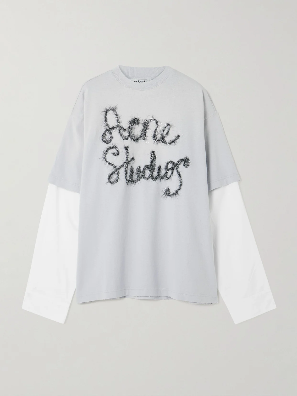 Layered Embroidered Cotton-jersey And Poplin T-shirt