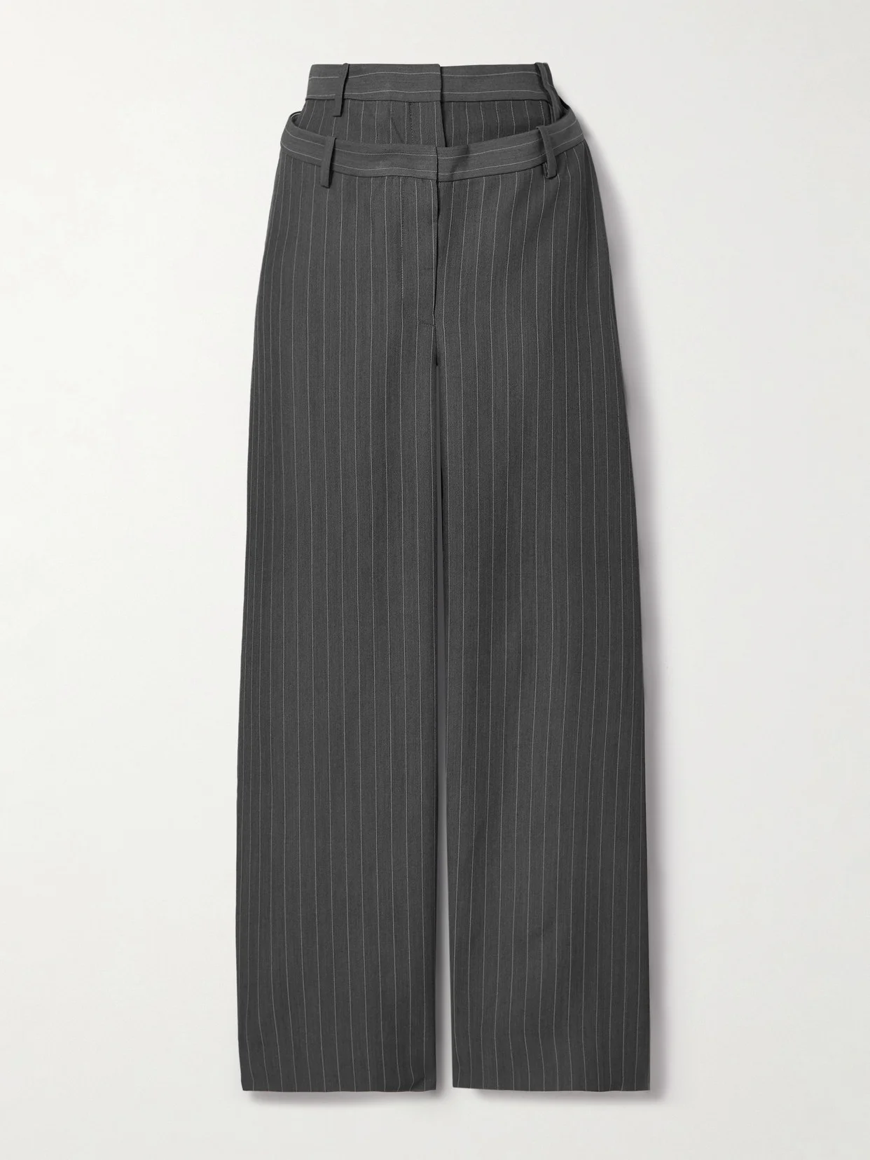 Acne Studios' pants are designed with a layered waistband - the outer one is slung low and loose and can be unfastened for added effortlessness. Tailored from twill, they're patterned with timeless pinstripes and have wide legs.